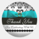 Pegatina Redonda AZUL TURQUASA Y BLANCO DAMASK RIBBON Aquamarine