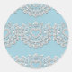 Pegatina Redonda Azul Turquesa Blanco Encaje Corazón Boda Novia