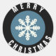 Pegatina Redonda Azul y negro con copo de nieve blanco grande