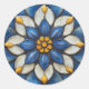 Pegatina Redonda Azulejo floral Blanco azul y amarillo