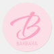 Pegatina Redonda B Monograma Rosa Personalizado