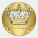 Pegatina Redonda Baby Blue and Gold Prince Baby Shower