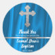 Pegatina Redonda Baby Blue Cross Baptism Favor | Muchacho Gracias