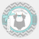 Impresión de chevron gris dulce con acentos acuáticos y un salto de punto de polka con corbata de arco y guarnecido de cinta de aspecto 3D niño etiqueta de regalo de ducha de bebé.
