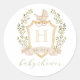 Pegatina Redonda Baby Carriage Crest Monogram | Neutral Baby Shower