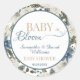 Pegatina Redonda Baby in Bloom Blue Floral Botanical Baby Shower