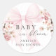 Pegatina Redonda Baby In Bloom Pink Bow Baby Shower Sticker