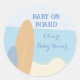 Pegatina Redonda Baby on Board Surfing Beach Baby Shower