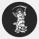 Pegatina Redonda Baby Reaper Skull Scythe Blackwork Tattoo Flash