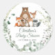 Pegatina Redonda Baby Shower Animales del Bosque Vegetación