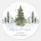 Pegatina Redonda Baby Shower azul del bosque de invierno acuarela