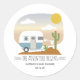 Pegatina Redonda Baby Shower azul del Camper Desert Clothesline