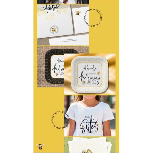 Combo de miel en el fondo con una adorable e ilustrada abeja en el centro. La copia dice: "Gracias por la apicultura aquí". También está presente el nombre del invitado de honor. Perfecto para niñas, niños o eventos neutrales en género. Asegúrese de comprobar otras piezas de coordinación de la colección.