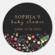 Pegatina Redonda Baby Shower Black Simple Elegant Wildflower