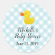 Pegatina Redonda Baby Shower Blue Gingham Rubber Duckie