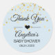 Pegatina Redonda Baby Shower Blue y Gold personalizado gracias
