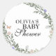 Pegatina Redonda Baby Shower Boho Verde Suave de Género Neutral con