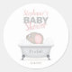 Pegatina Redonda Baby Shower Chica de Baño de Elefante Búbico