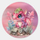 Pegatina Redonda Baby Shower Chica Dragón rosa caliente