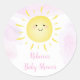 Pegatina Redonda Baby Shower Chica rosa de nubes solares