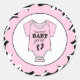 Pegatina Redonda Baby Shower con equipo para bebés rosa de cebra