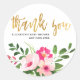 Pegatina Redonda Baby Shower con guión dorado rosado gracias