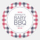 Pegatina Redonda Baby Shower de barbacoa Preppy Red, Blanco y Azul