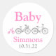 Pegatina Redonda Baby Shower de bicicleta rosa