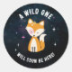 Pegatina Redonda Baby Shower de Chica rosado de Fox Wild One