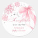 Pegatina Redonda Baby Shower de copos de nieve rosados en invierno