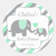 Pegatina Redonda Baby Shower de elefantes de tiras blancas, verdes
