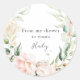 Pegatina Redonda Baby Shower de Flores Rosadas y Verdor