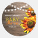 Pegatina de duchas con flores de girasol, decorado con un fondo rústico de madera, dos girasoles amarillos y naranjas, luces de cuerda y una plantilla que es fácil de personalizar.