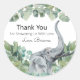 Pegatina Redonda Baby Shower de Grey Elephant Greenery Gracias