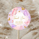 Pegatina Redonda Baby Shower de mariposa morada de oro rosa