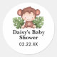 Pegatina Redonda Baby Shower de mono de acuarela cuta