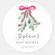 Este pegatina Navidad Baby Shower está decorado con mistletoe verde acuarela, cinta roja y tipografía elegante. Personalizable fácil. Acuarela original © Michele Davies.