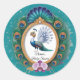 Pegatina Redonda Baby Shower de pavo real blanco y dorado