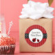 Pegatina Redonda Baby Shower de puntos rayados de bicho rojo y negr