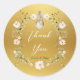 Pegatina Redonda Baby Shower del bebé con floral dorada Bunny