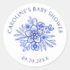 Pegatina Redonda Baby Shower Floral Azul Francés