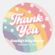 Digan gracias a sus amigos y familiares por asistir a su ducha de bebé con estos pegatinas de arcoiris temáticos de los años 70.