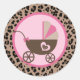 Pegatina Redonda Baby Shower Leopard and Pink Carriage