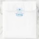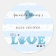 Elegante diseño de Baby Shower con suave estampado azul y blanco con puntos de confeti azul claro y un AMOR con huellas de pies y manos de bebé en azul, un corazón azul y una caligrafía de nombre. Personalice cambiando el nombre y el texto.