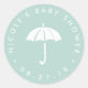 Pegatina Redonda Baby Shower Mint and White Umbrella