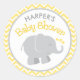 Pegatina Redonda Baby Shower moderno de elefantes amarillos y grise