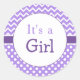 Pegatina Redonda Baby Shower morado de chevron y polkas