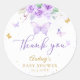 Pegatina Redonda Baby Shower morado de mariposa dorada