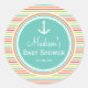 Pegatina Redonda Baby Shower náutico, brillantes franjas arcoiris