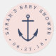Pegatina Redonda Baby Shower Náutico de anclaje rosa y naval